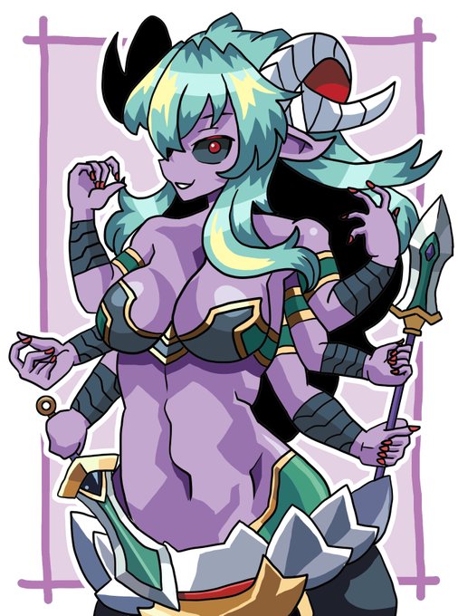 これ含めた髪下ろしムジナ嬢表情集。 現状パターンは 表情4種(new!) 髪型2種 腹部カバーありなし 甲鎌刀ありなし の現状32種差分があります。 こうなると保存がめんどっちいのよ(笑) #神羅万象 #神羅万象チョコ #黒耀聖天ムジナ #イラスト #絵 #illustlation twitter.com/melonism14/sta…