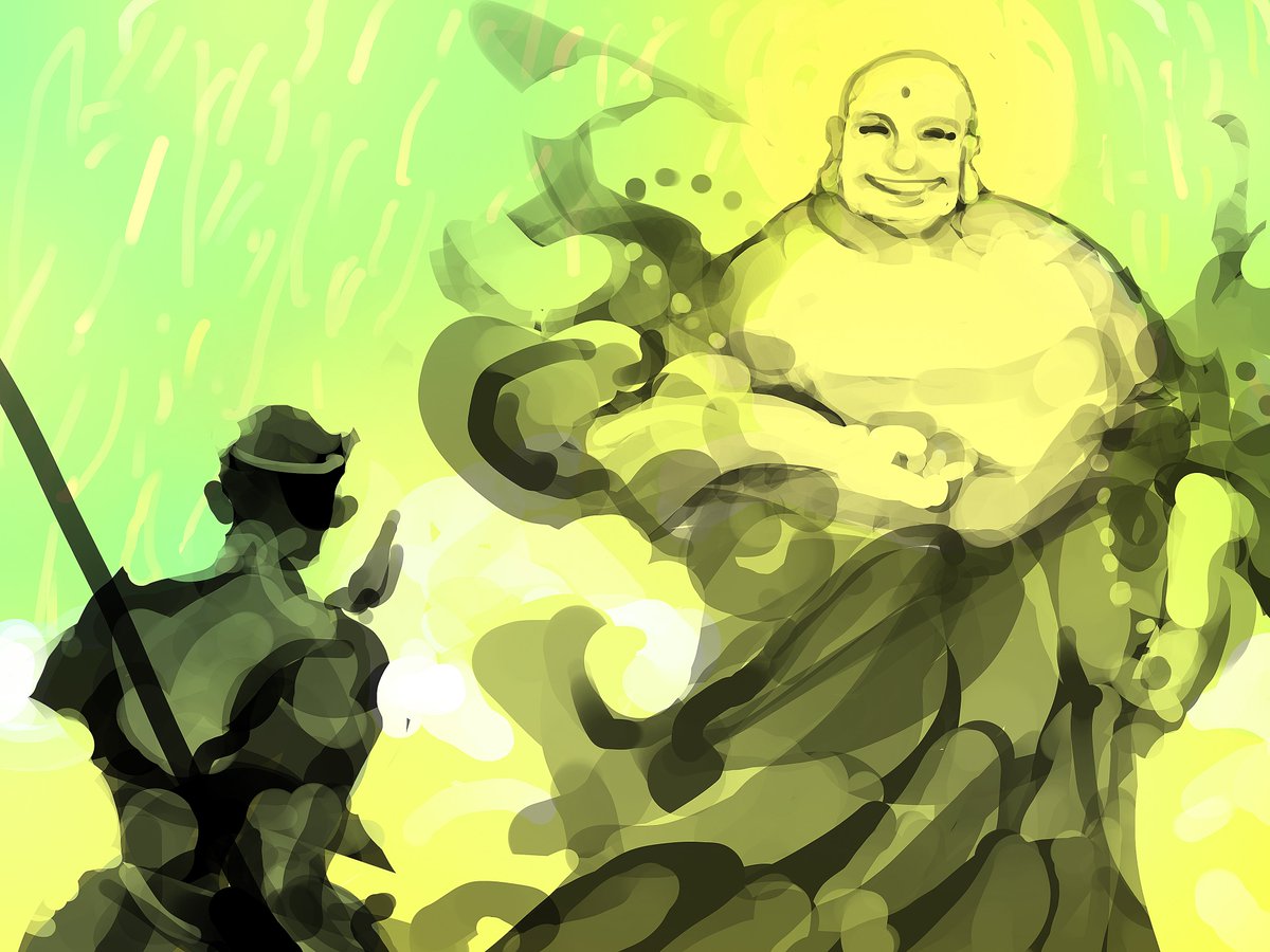 西游记原著插画系列 第六十六回 极乐场中第一尊 南无弥勒笑和尚 #西遊記 #孫悟空 #イラスト #monkeyking #journeytothewest #アナログ #神话 #mythology #original #art #小西天 #弥勒佛 #东来佛祖