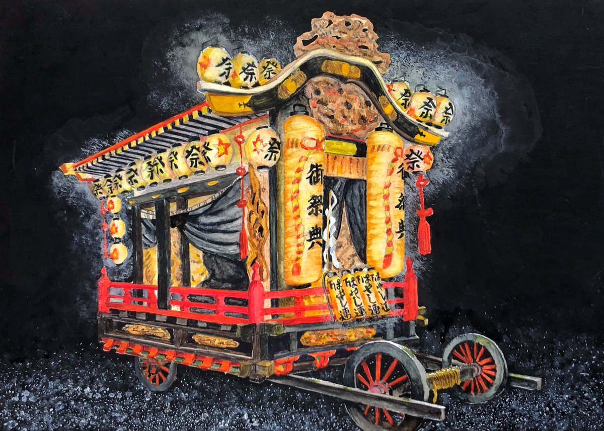 埼玉県越生町 越生まつりの神輿 Shop kuritachika.thebase.in #japan #traditionaljapanese #japaneseculture #神輿 #祭 #日本 #埼玉県 #越生まつり #囃子 #art #watercolorpainting #水彩画