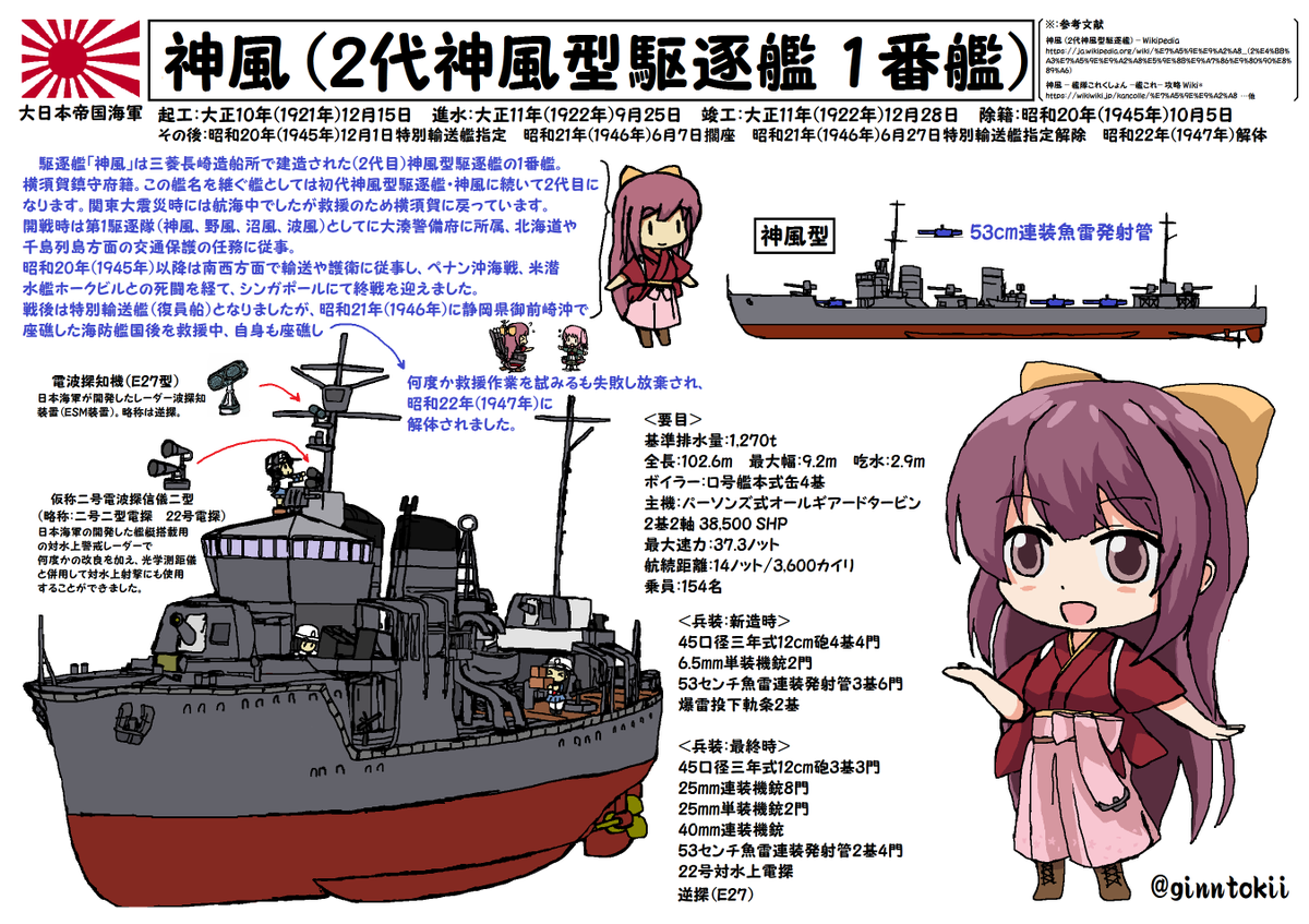 神風「旧型ですって? 馬鹿ね。駆逐艦の実力は、スペックじゃないのよ!!」 #艦これ版深夜の真剣お絵描き60分一本勝負 #艦これ版真剣お絵描き60分一本勝負_20220925 #神風 #神風進水日