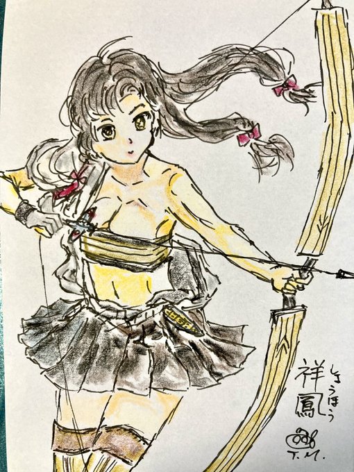 🎉新年、明けましておめでとうございます。🎊 🎉今年もよろしくお願いします。🎊 描いた祥鳳ちゃんのポーズは、指月伏見城ちゃん(#城プロ)の絵を見て描きました(/ω\) #祥鳳 #アズールレーン