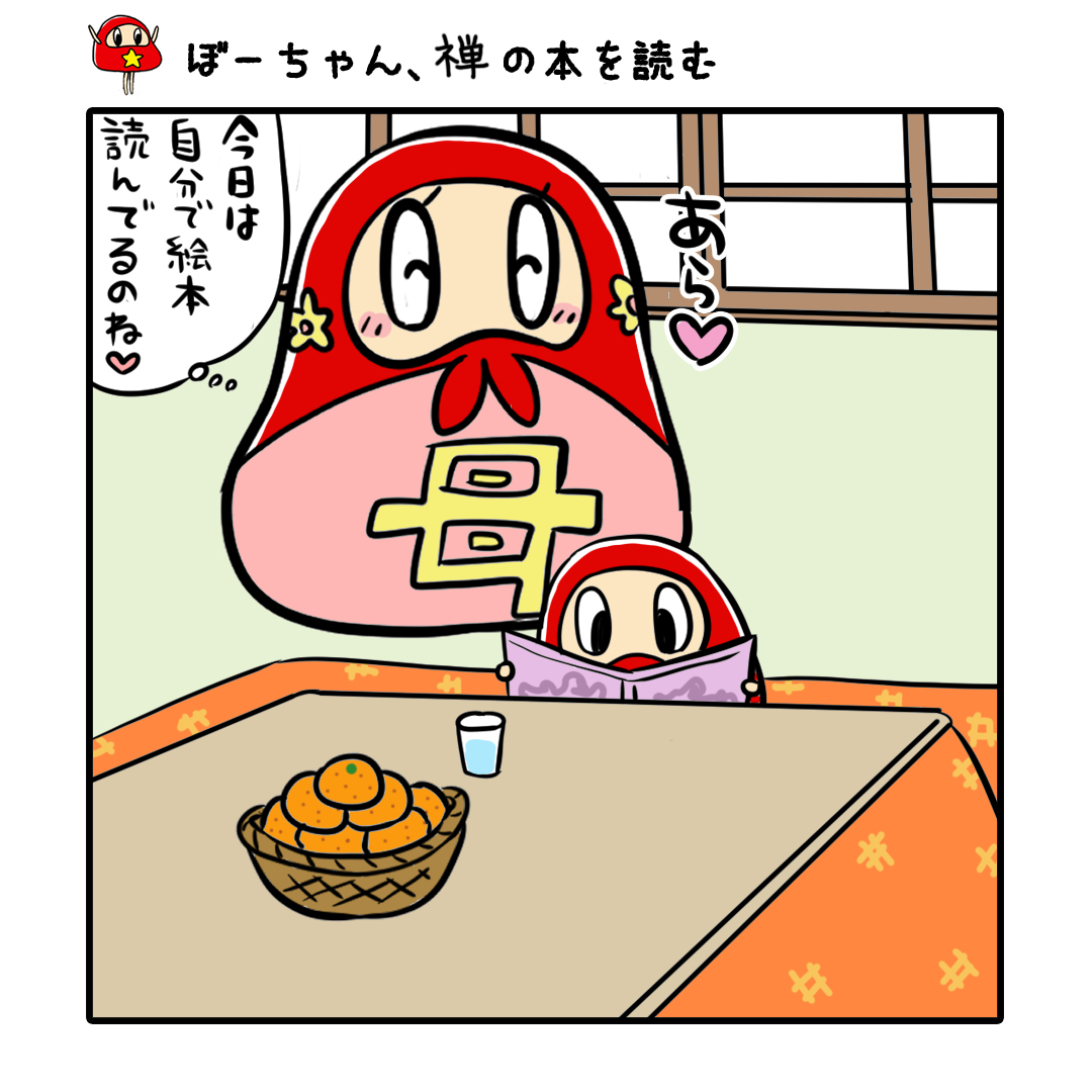 『ぼーちゃん、禅の本を読む📖✨』 今日は難しそうな読書にチャレンジ? #読書 #禅 #だるまのぼーちゃん #イラスト #ゆるいイラスト #ゆるかわイラスト #お絵かき #絵描きさんと繋がりたい #一日一絵 #4コマ漫画 #漫画 #漫画が読めるハッシュタグ