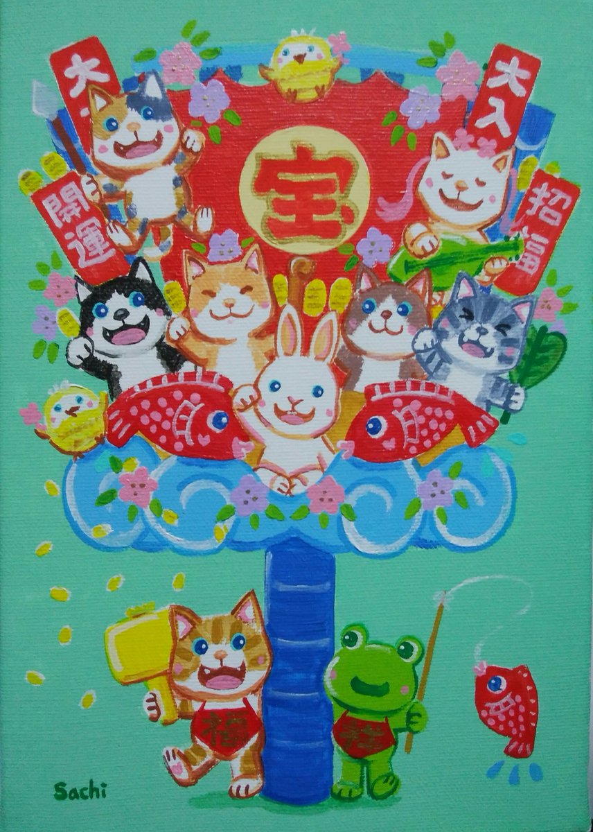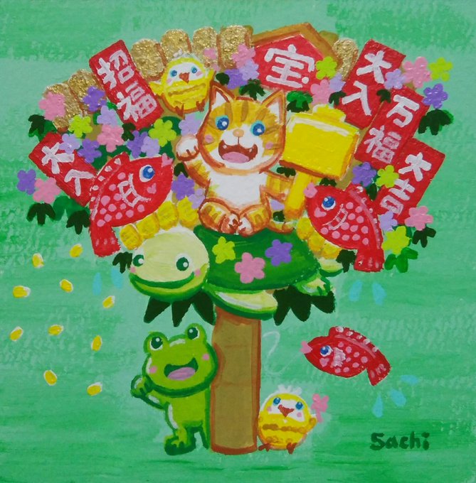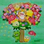 #招き猫の日 #招き猫 #福 #絵柄好みって人にフォローされたい #イラスト #絵描きさんとつながりたい #イラスト好きな人とつながりたい #ゆるい絵 『くる(9)ふ(2)く(9)』(来る福) 🐱🐻💝