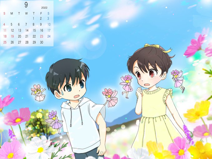 9月カレンダーイラスト描かせていただきました。カレンダーなしのイラストだけの物もあります。こちらから無料ダウンロードできます→ hukumusume.com/douwa/gazou/ne… #福娘童話集 #イラスト #無料カレンダー #幼馴染イラスト #イラスト好きな人とつながりたい #9月カレンダー #コスモスイラスト
