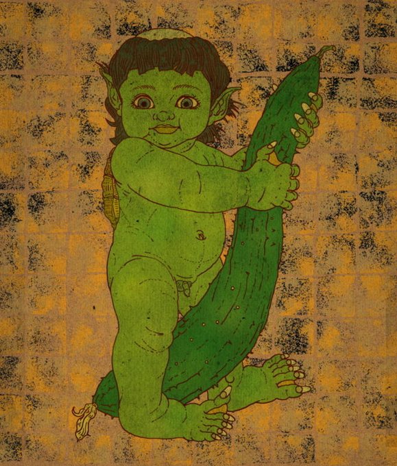 ミず鬼ずム百景67 でっかいキュウリを持つ河童ちゃん 暑い時は冷えたキュウリが美味しいです☺ #Twitter夏祭り #イラスト王国 #夏の創作クラスタフォロー祭り #創作クラスタさんと繋がりたい #拡散希望 #妖怪 #芸術の輪 #絵描きさんフォロバ100 #私の絵柄が性癖に刺さる人に届いて欲しい #福岡