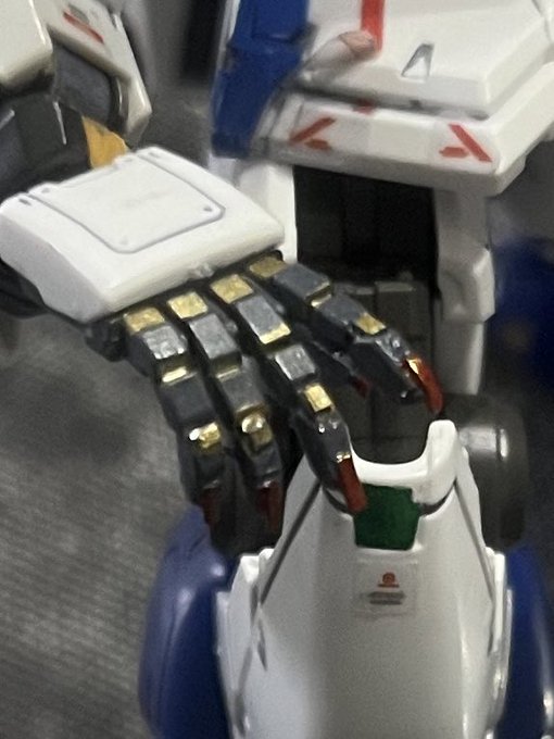 福岡ニューガンのハンドパーツ加工 プラ板で爪作った!金色の機械部分と赤色の爪めっちゃいい感じ!(AOZの影響w)#ガンプラ好きと繋がりたい #ガンプラの画像貼るとRTされると聞いて #福岡νガンダム #ハンドパーツ #手