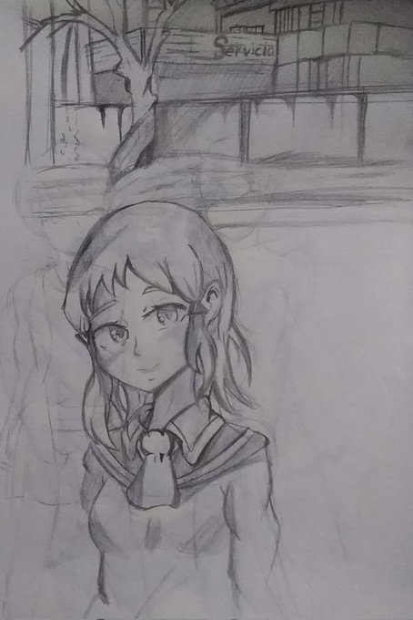 Tsukune sketch. Habia hecho este boceto mientras esperaba ayer unas cosas en el hospital. Al igual que habia dibujado el paisaje de afuera. #sketch #magicalgirlapocalipse #ArtistOnTwitter #draw #魔法少女・オブ・ジ・エンド #魔法少女サイト #福本つくね