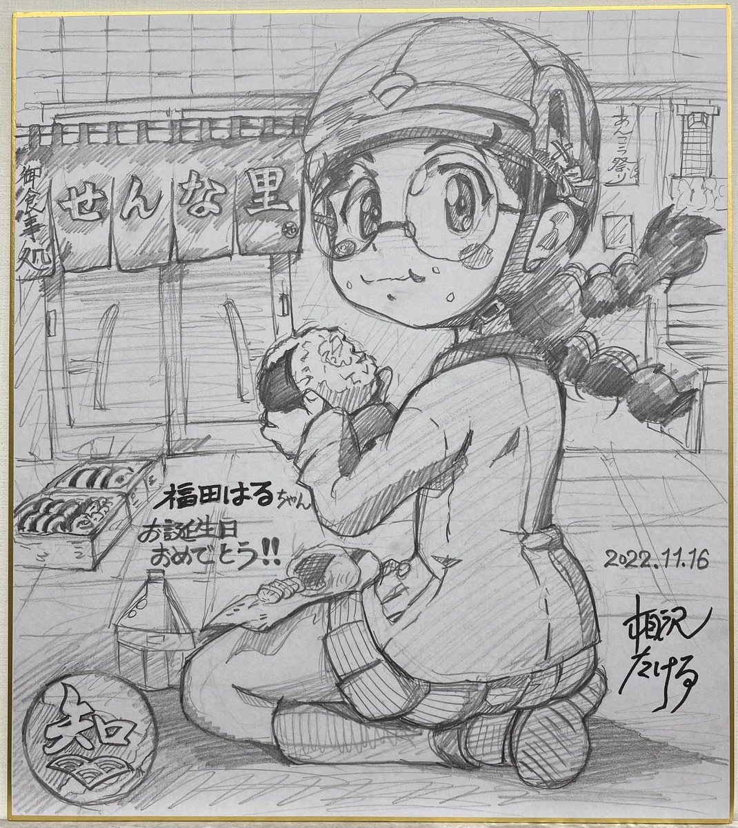 ㊗️福田はる殿、お誕生日おめでとうございます🎊🎉🎁 はるちゃん、初めて描きました😓 相変わらず、似ない・色ない・可愛くないですわ😂 あんこう祭の日だけ、雨マークがあるのは何故ですか?😭 なんで降水確率が90%なのですか?😭 #福田はる生誕祭2022 #福田はる生誕祭