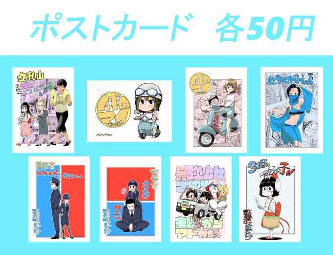 明日のコミティアで販売するポストカードの一覧です!一枚50円で販売します。 あと気が向けばミニ色紙も販売します。 一枚500円〜で販売するつもりですのでよろしくお願いします😊 #歌舞伎町プロダクション #コミティア141 #福田泰宏