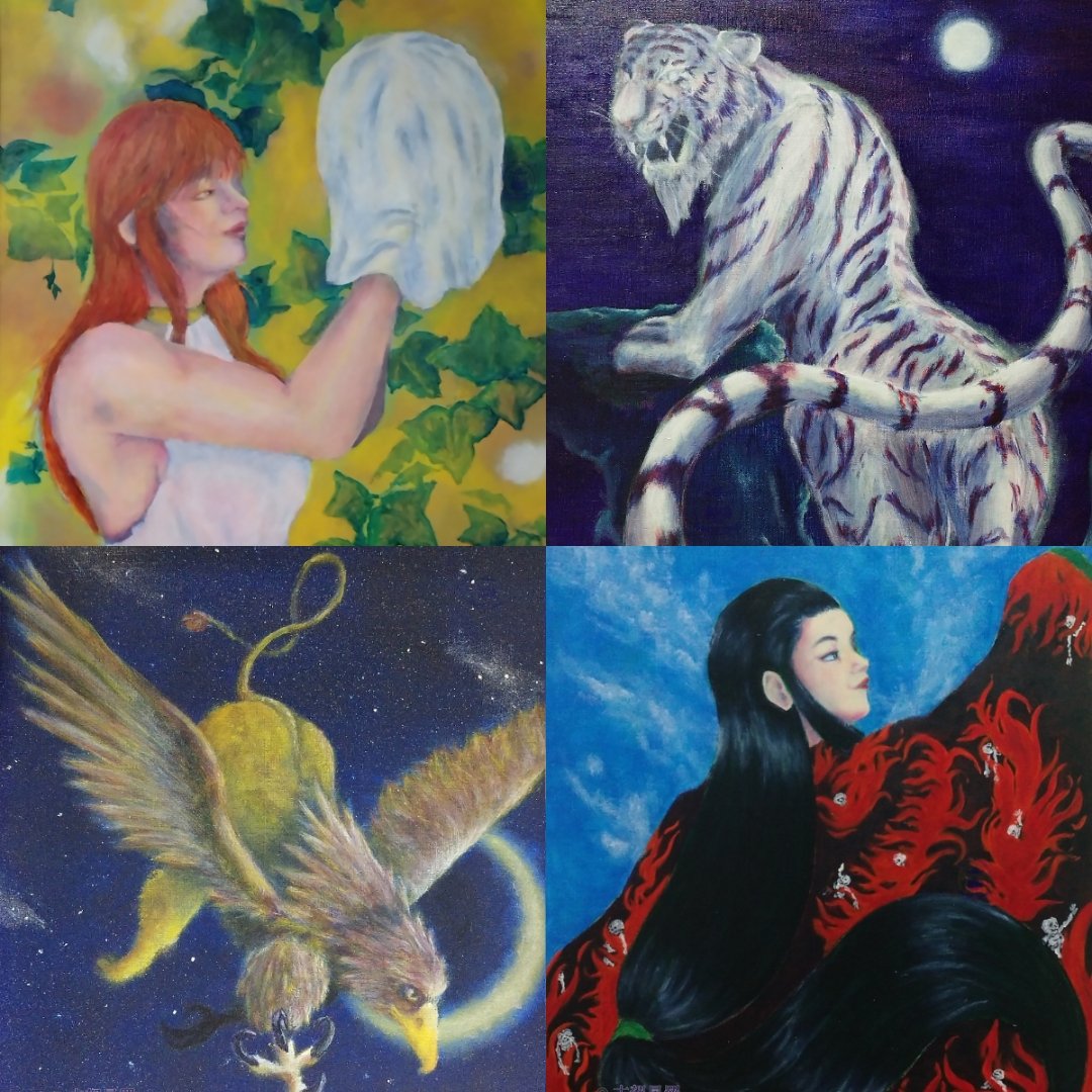 #私がやってる創作をざっくり言う 主に神話や民間伝承を題材に油彩画を描く神話画家(メイン) 神話以外にもデジタルやペン画も描での表現も模索中。 そしてたまに写真を撮る人になったり撮られる人になったり。