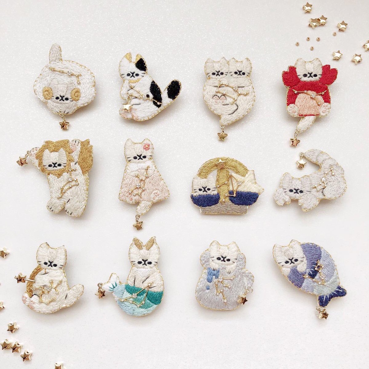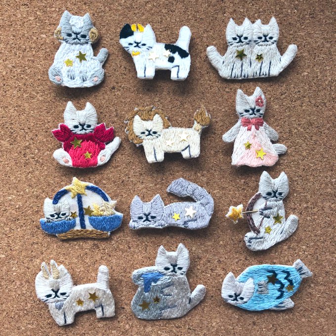 #私これでも成長したんです展 2年前の初代12星座の猫ブローチと今のブローチ比較🐱💫 作っているときはこれが自分の最高傑作だと思っていても、こうやって比べてみると日々成長しているんだなぁと実感します🪡🧵