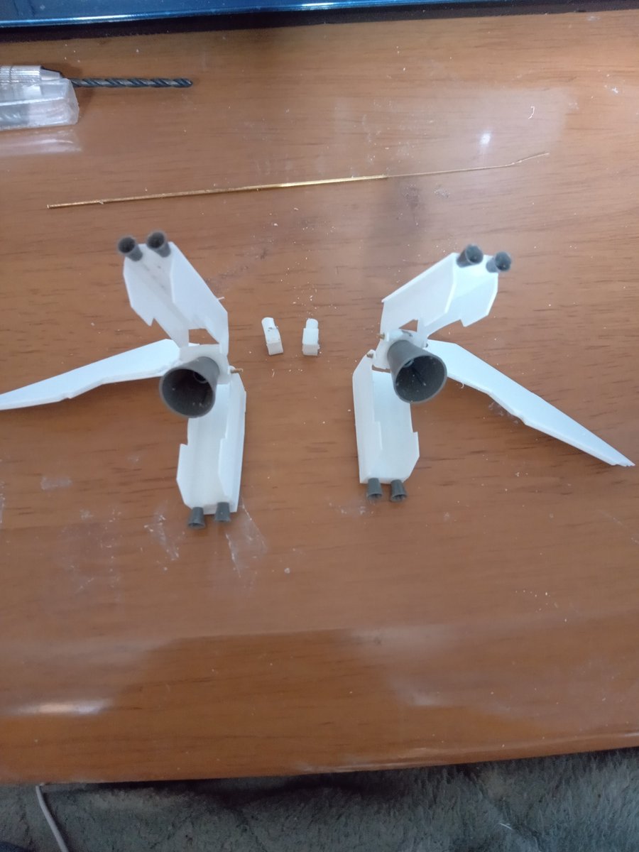 #ガンプラ好きと繋がりたい #ガンプラの画像を貼るとRTされると聞いて #私しかやってない ストライクガンダムのバックパックと言う位置づけ。 展開状態と収納状態を再現できるブースター。 ここには映っていないけど、バッテリーと複合センサーユニットのある中央部を作っている。