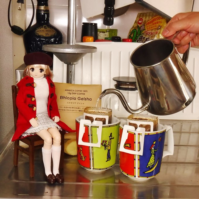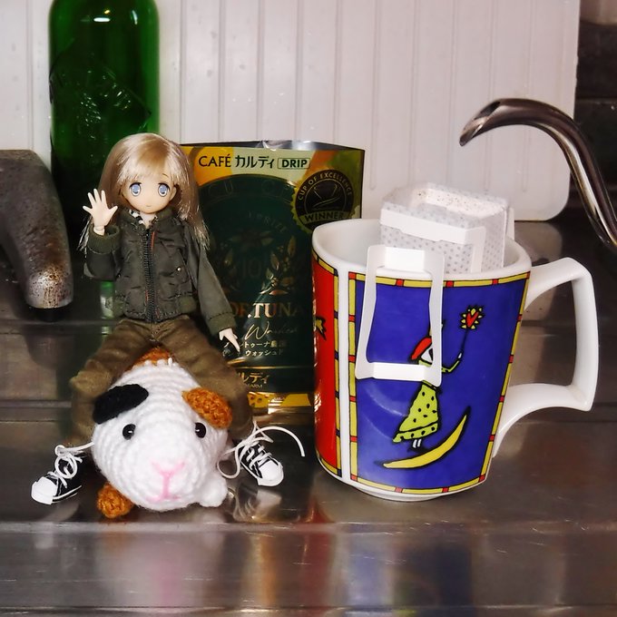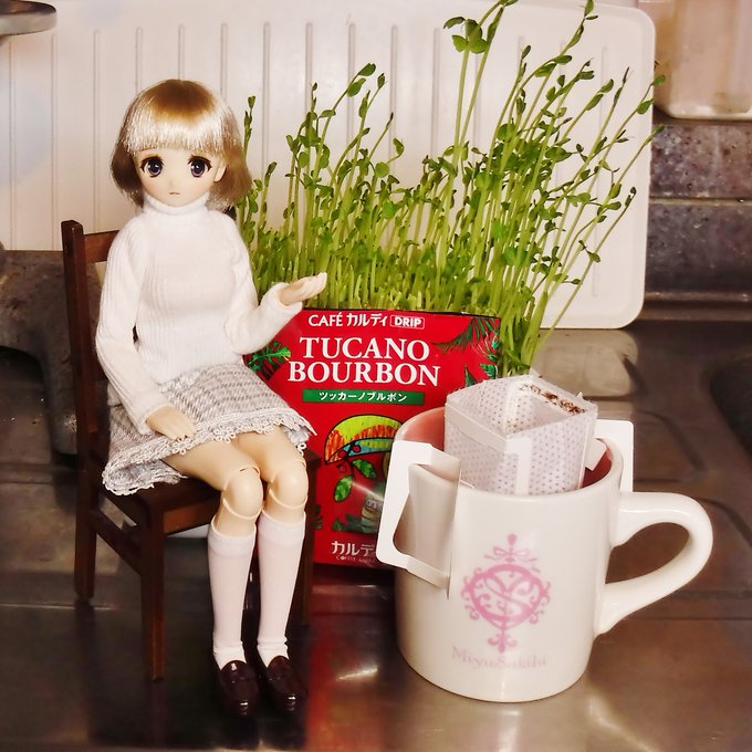 【#今日のコーヒー】 #私のコーヒー 今朝はカルディのDRIP マンデリンフレンチと ブルーマウンテンブレンドの 飲み比べを楽しんでいます \(^o^)/ #おはドル #うちのこに癒され24時間 #うちのこかわいい #うちの子かわいい #ドールオーナーさんと繋がりたい #アゾカツ