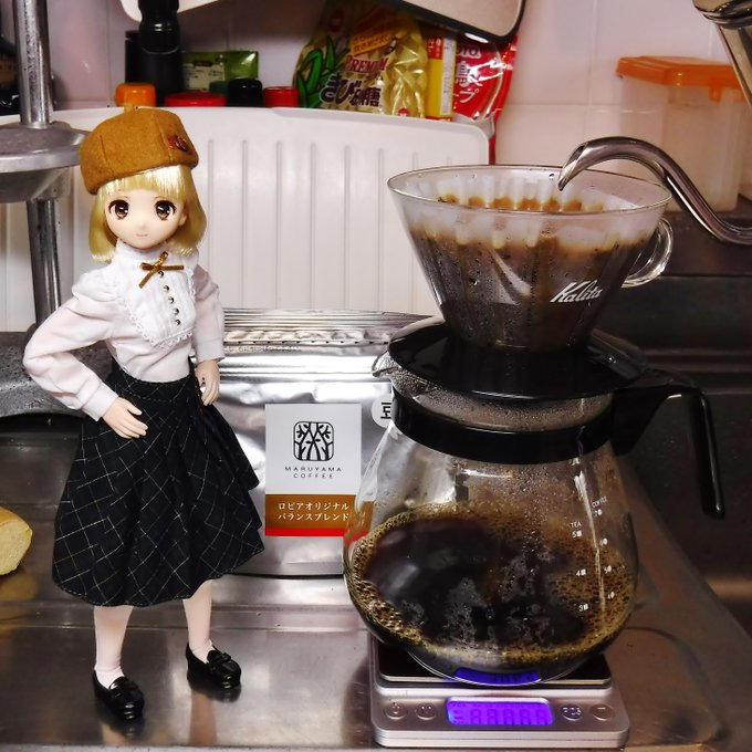 【#今日のコーヒー】 #私のコーヒー 今朝は丸山珈琲 製造の ロピアオリジナルバランスブレンドを カリタ185waveで… 甘さコク苦味のバランスの良さと 仄かな酸味で飲み易く美味しいです #おはドル #うちのこに癒され24時間 #うちのこかわいい #ドールオーナーさんと繋がりたい #八重坂しの #コーヒー