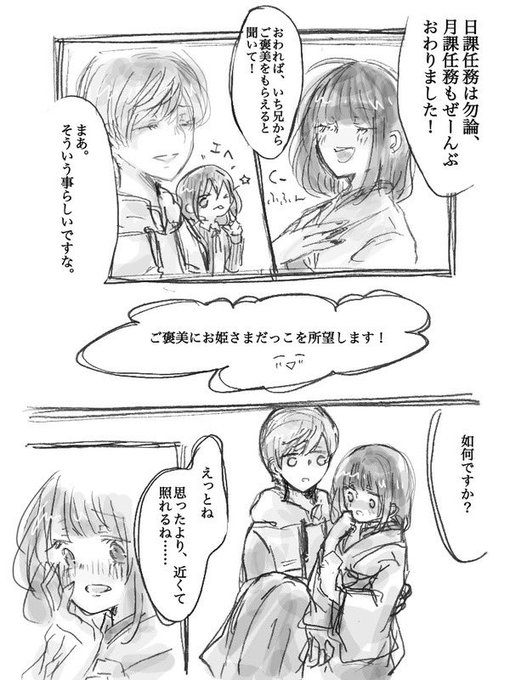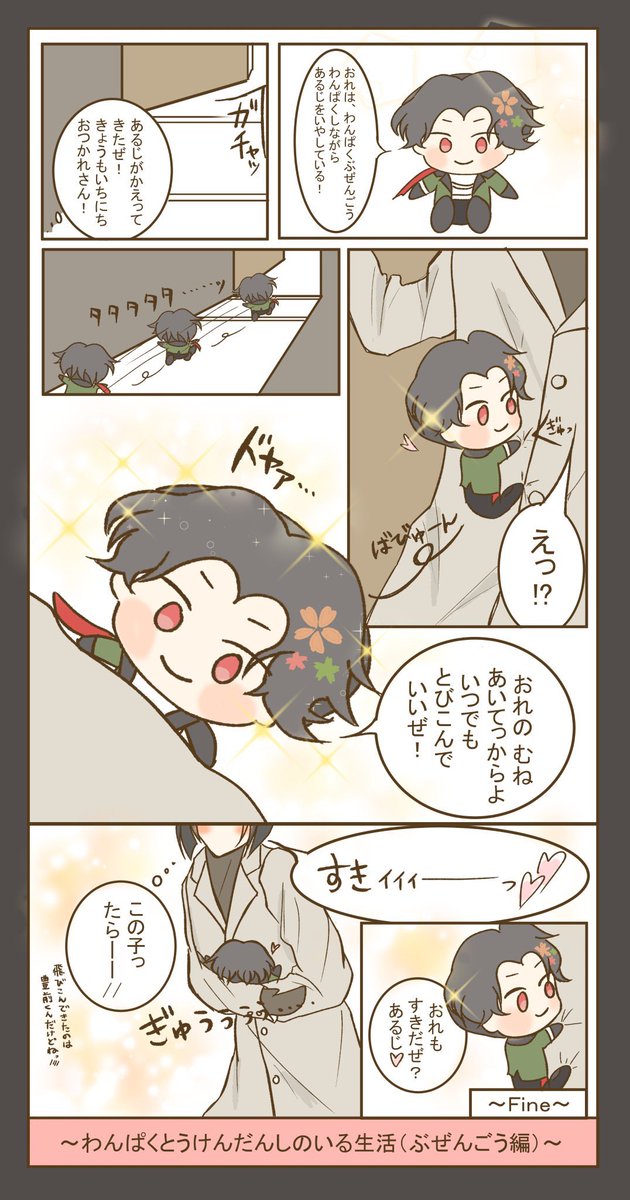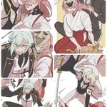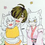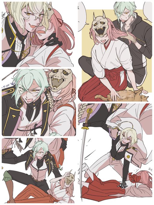#私の刀さにが好みって人に見てもらえたらハッピー 久しぶりに桑🐈描きたくなったけど今描けないので過去絵を載せて描いた気分になる 1枚目は自己投影、本編、ifになります 2枚目トレス素材お借りしました本編 3枚目以降はif。疑似家族。さにわの娘ちゃんに付けられて常時目が見えてます