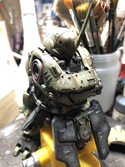 #私の汚し塗装をお見せします ウェザリングカラー大好きオジサン♪ 角っことか鈍く鉄感欲しいところは濃い鉛筆とか、キズの奥の方にはリアルタッチペンねじ込んだり。 基本塗装時点でなんか薄汚れてます。。ヘン? (; ̄ェ ̄。