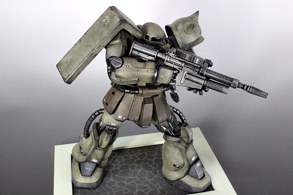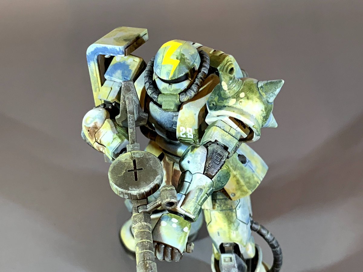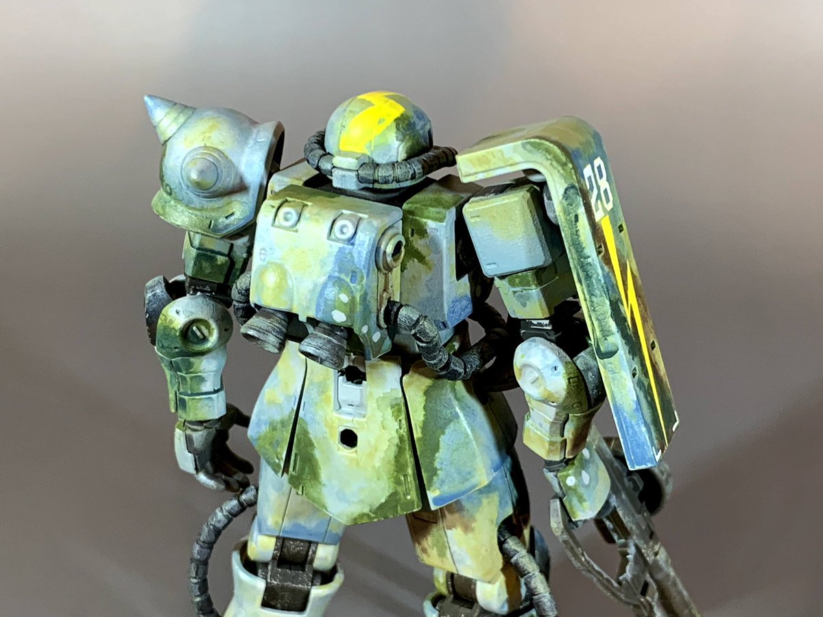 #私の筆塗りを見てくれ #ガンプラ好きな人と繋がりたい オリジン・ザクⅡを高荷義之先生の画稿風の砂漠迷彩カラーに塗装しました🤓タミヤアクリルを溶剤の表面張力を利用した筆塗りで、ボカした感じに何色か重ね塗りしました🤗 👇製作動画を見てみて下さいまし👇 youtu.be/0stjKfurUaQ