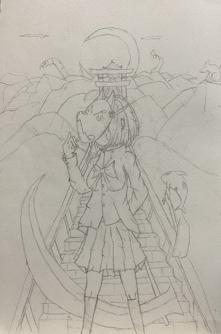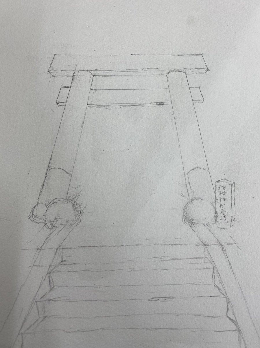 中学あたりで描いた絵!今見ると殺風景ですなぁ・・・今の絵は中学の時より画力上がってるかな・・・ 〜蛇神神社参道〜 #オリキャラ #絵描きさんと繋がりたい #私の絵柄が好みっていう人にフォローされたい
