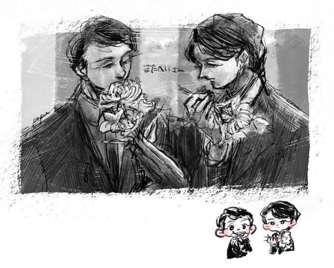 #私の絵柄でリメイクして欲しい絵をリプに貼ってください のタグの3枚目が描けたよ!!ひきずられちまって、ほぼ模写になっちまったよ!似てるのかもしれないね、絵柄がね!で、久しぶりに作画コストの高い絵を描いたからね、偉いねアタシゃね!!ほめてくれていいよ!! #絵描きさんと繋がりたい twitter.com/aijapana/sta…