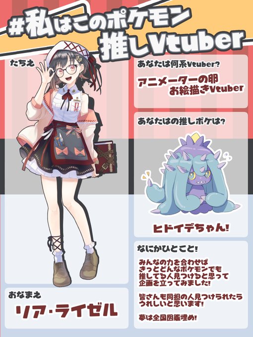 テンプレのサンプルはこちら…! ヒドイデ大好きリアちゃんです!このやみかわさみんなわかります???サニーゴとの関係性も大好きだし毒でじわじわ相手を責めるところもいいしつよいし最強です!🤓 ヒドイデちゃんをよろしくお願いします…!🥺 #私はこのポケモン推しのVtuber