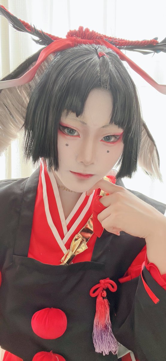 #私は自分のコスプレのココが好き 素敵なタグを作ってらっしゃったので…… たまにはこういうのしてもええ……カナ!? 素顔をコロすを念頭にメイクしているので、顔面の振り幅……は好きというか頑張ってる……☺️ あと衣装の生地やウィッグとかに謎のこだわりを見出しよく自分の首を閉めてるとこ