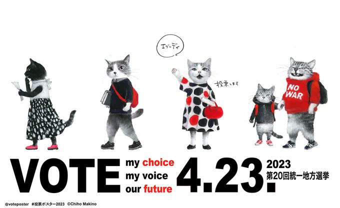 さて統一地方選挙の後半選、23日が投票日。 今回も猫だけど、本気です。 #私も投票します #投票ポスター2023 #統一地方選挙 セブンイレブンの「ネットプリント」 予約番号 45KDDACBでプリントできます。 (2023/04/22まで) A4カラー 60円/白黒 20円