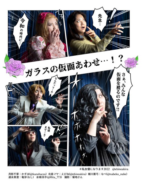 【ガラスの仮面 コスプレ】 ✨🎭私、女優になります🎭✨ 北島 マヤ: えびね 姫川 亜弓: なべ さん 月影 先生: かずは さん 速水 真澄: 竜牙 水城 秘書: り太 さん 📷: 菊地 さん #私女優になります2022