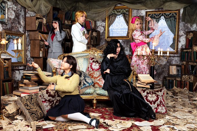 ◤ ◥ Cosplay ガラスの仮面 ◣ ◢ . ✨私、女優になります🎭✨ . 北島マヤ_えびねさん 姫川亜弓_なべさん 月影先生_私 速水真澄_竜牙さん 水城秘書_り太さん . p/菊地さん . #私女優になります2022 #kzhcos