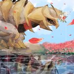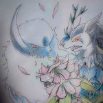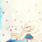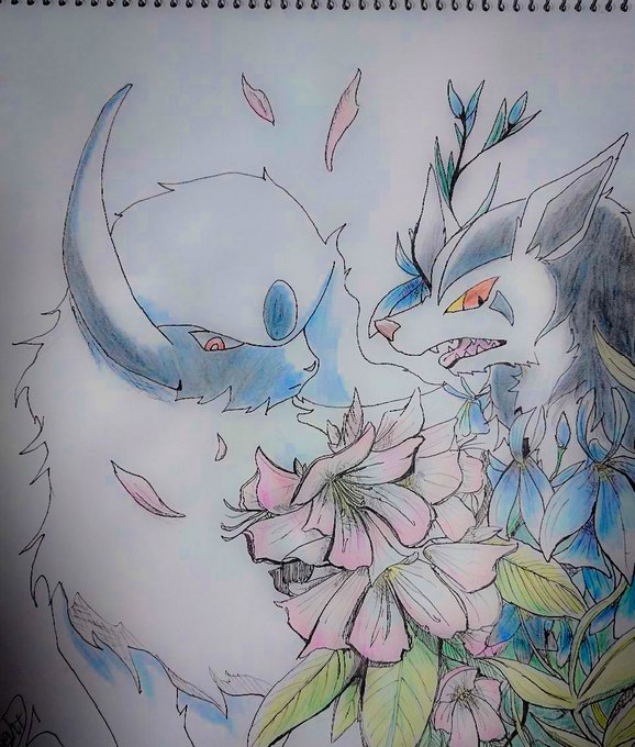 #秋に舞い込む花吹雪 ぺむちさん(@chikuwa_3296)の企画に参加させて頂きました!! レシラム × 桜「花の舞」 10月の花使って描こうとしたんですけど構図が思い付かなかったので脳死で描きました(^^)