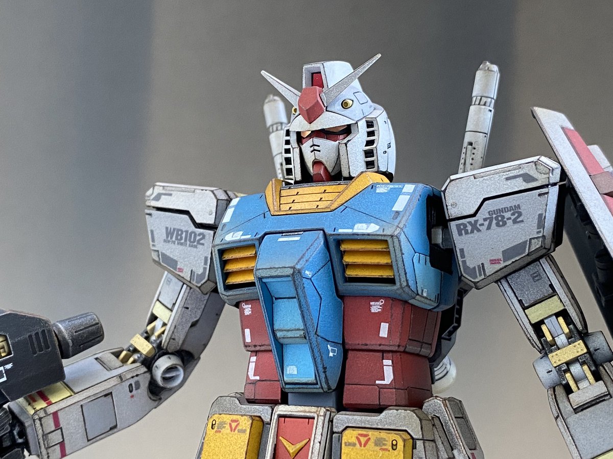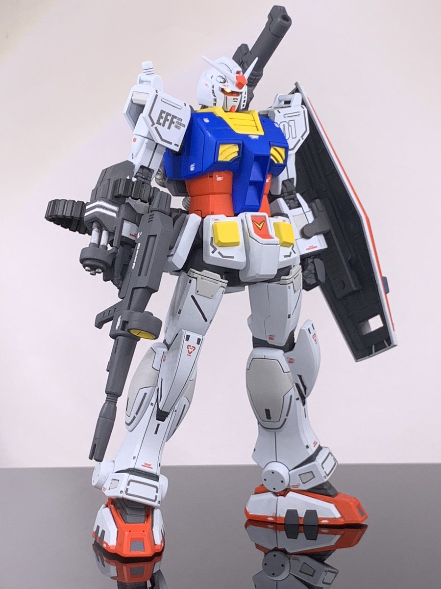 #秋のガンダム祭り2021 タイトル「完成」 「完成を目指して作る楽しさ」を表現したくて作製。 完成していないのに「完成」というタイトルも楽しんでもらいたいですw 素材はPGガンダムなので大型ディオラマです😆 全身に張り巡らせたトラスは自作でメッキ調塗料で塗装。