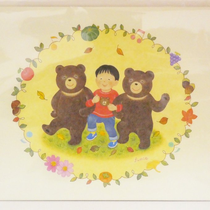 くぼふみえさんのA4プリント 秋るんるん 600 yen #イラスト #色鉛筆画 #秋イラスト #秋の絵 #熊の絵 #熊と子供 #fallillustration #autumnillustration #colorpencildrawing #bearsandboy #街知の箱 instagr.am/p/CkQLQxMulA2/