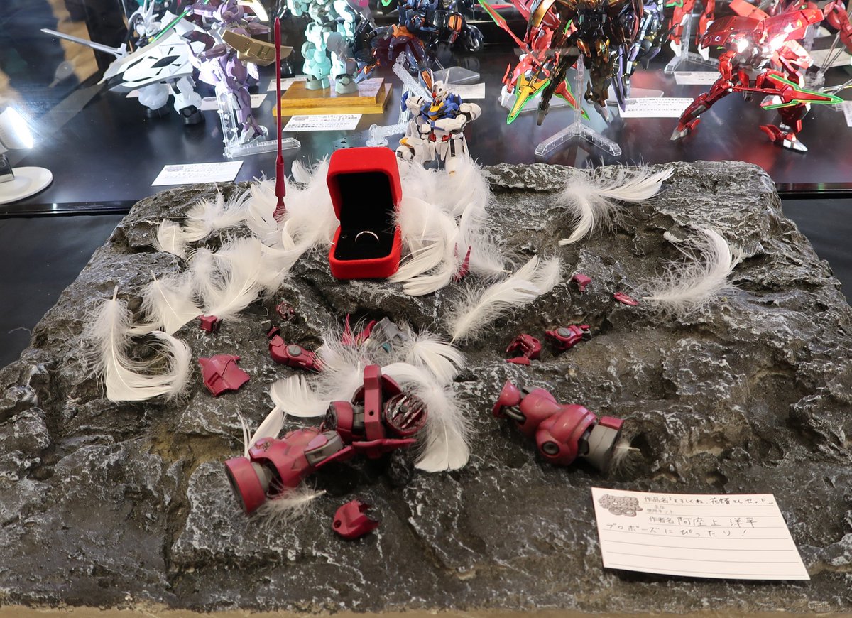おはようございます☔️ 本日あいにくの雨ですが、秋工祭∞2日目、もうすぐ始まりますー! GIGO5号館様に本日もグエルの胸像を展示させていただいております 阿座上さんのジオラマを筆頭にディランザ、ダリルバルデがたくさん展示されていますので、ぜひ見にきて頂けると嬉しいです…!🙏😊 #秋工祭 twitter.com/moriwakinaoto/…