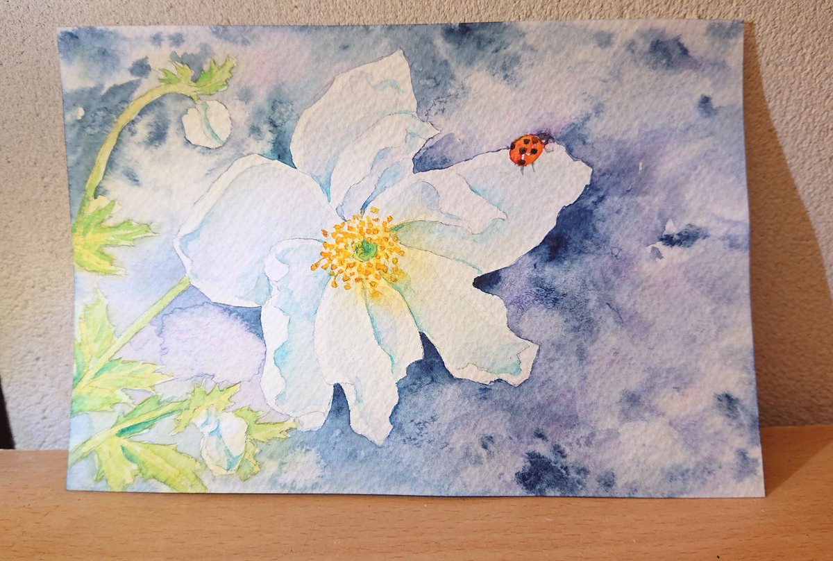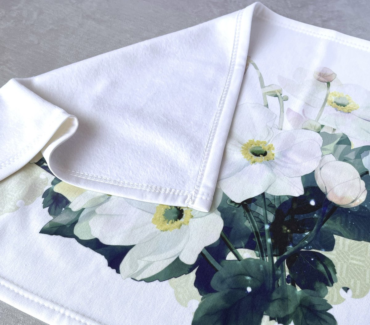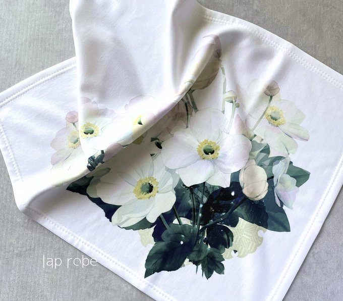 新作のお知らせ* - 秋明菊 - 花と草木の ひざかけサイズブランケット(薄手タイプ) ブランケットですが薄手のため冷房対策にも◎ コンパクトにたためるため、バッグに収める事も可能です* ▶︎minne.com/items/33559543 ▶︎creema.jp/item/14441154/… #minne #Creema #絵 #イラスト #秋明菊