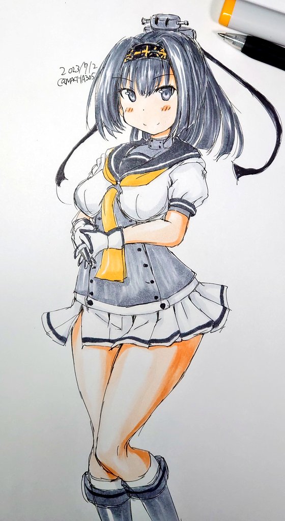 秋月です♪日付を間違えたので再掲。大好きな秋月の進水日を書き間違えるとは。無念。 #艦これ版深夜の真剣お絵描き60分一本勝負 #艦これ版真剣お絵描き60分一本勝負_20230702 #秋月 #艦これ