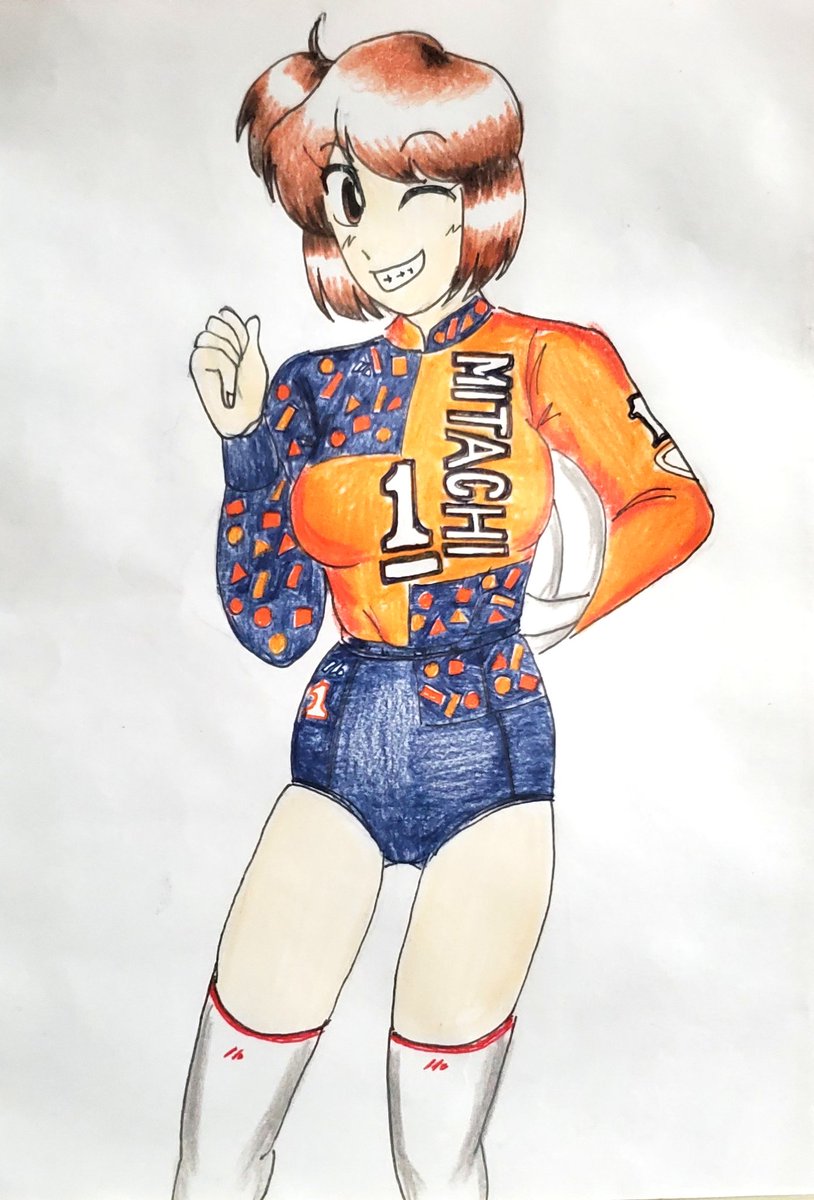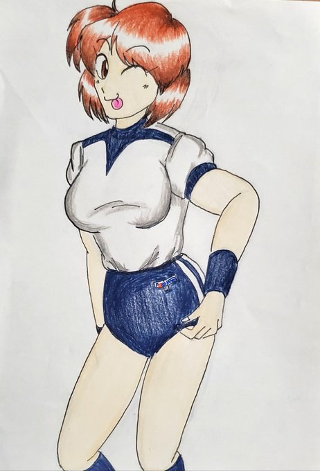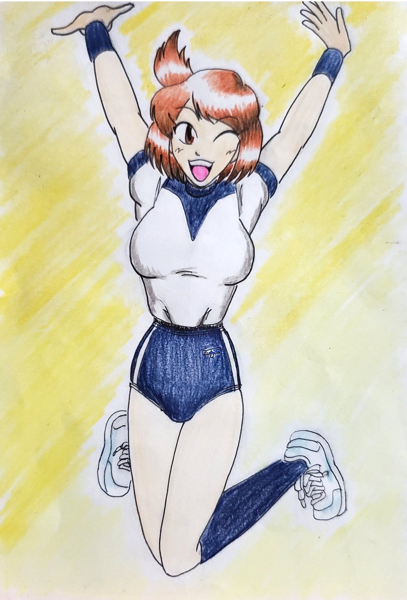 #よその子 #描かせて頂きました #秋月千秋 やまつさんち【@Yama32hetarest】の秋月千秋ちゃんを描かせていただきました✨😇 バレーボール部に所属していて、エネルギッシュでナイスバディ!🏐通りでブルマがお似合いなわけです…(笑)