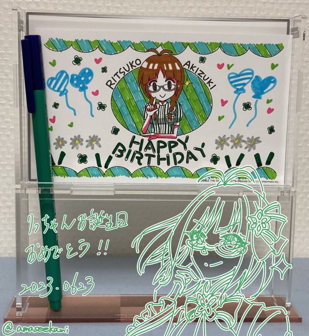 りっちゃんお誕生日おめでとう〜〜〜!!!👓✨🎉🎉 可愛くて凛々しくて頼もしい、欠かせない存在です!これからもアイドルとしてたくさんの魅力を届けていけますように…!!💚💚 #秋月律子生誕祭2023 #秋月律子生誕祭 #ミリシタxステッドラー
