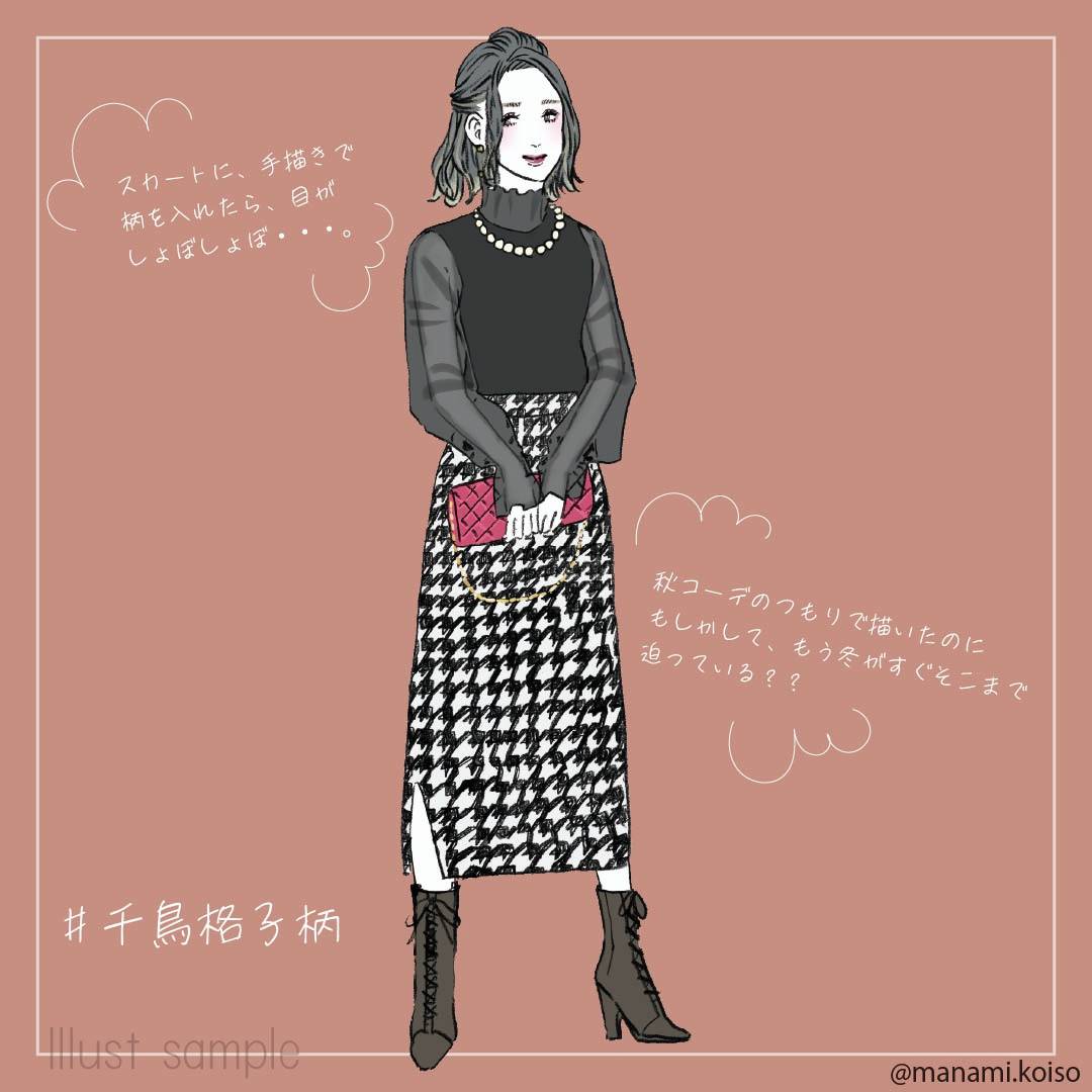 やっと、描けたー✴✴✴✴✴ もう、冬がすぐそこまで、迫ってる💦 一年に、何回か、本当にドラゴンボールの精神と時の部屋に引きこもりたいと思う(笑) #千鳥格子 #秋服コーデ #秋になってしまった #秋コーデ #スカート #レース袖トップス #イラスト #ファッションイラスト