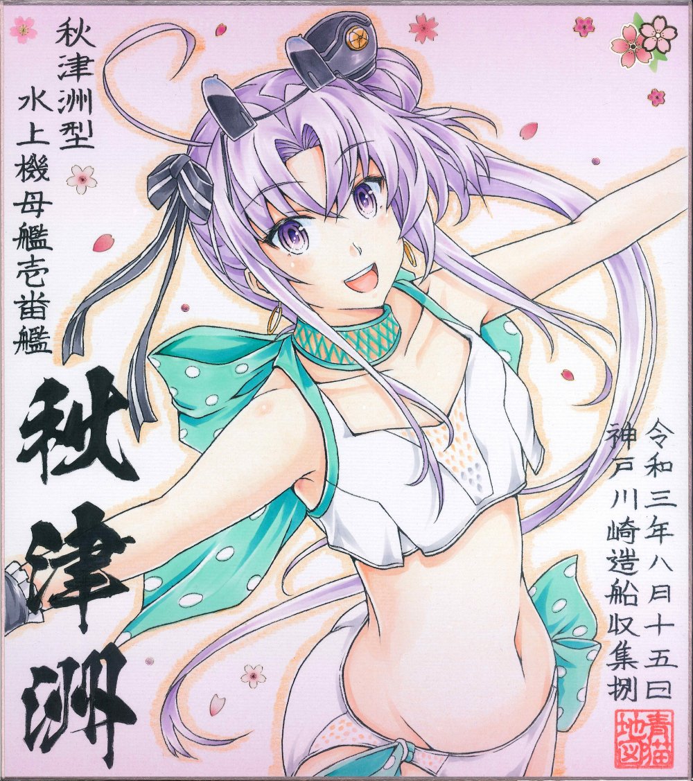 記念日かも! (1枚目:+55m、2枚目:1h時点) #艦これ版深夜の真剣お絵描き60分一本勝負 #艦これ版真剣お絵描き60分一本勝負_20220725 #秋津洲 日付またいだけど #秋津洲進水日 ※pixivに差分版あり