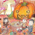 これは通年一生使いたいものとして昨年描いた色鉛筆五季(オリジナル世界観上四季では無く五季)イラストカレンダーの9・10・11月 山・食欲の秋要素もハロウィン要素もなんでもござれな感じで #オリジナルキャラクター #オリジナルイラスト #秋祭り #私の絵柄が好みって人にフォローされたい