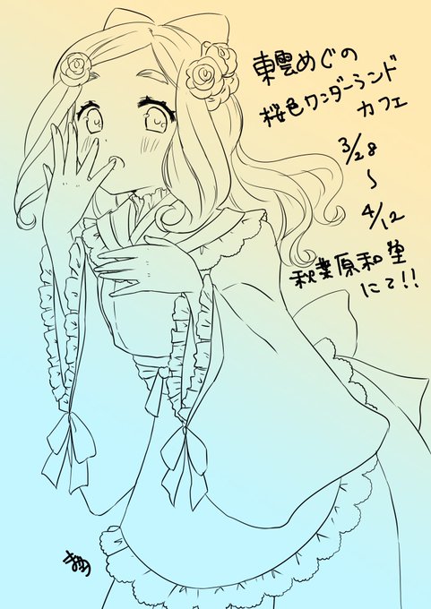 【お知らせ】 秋葉原和堂さん(@akiba_nagomido)と東雲めぐちゃん(@megu_shinonome)のコラボカフェのビジュアルイラストを描かせていただきました! 3月28日(月)、明日から開催です! よろしくおねがいいたします✨ #東雲めぐ #桜色ワンダーランドカフェ #秋葉原和堂 twitter.com/akiba_nagomido…