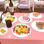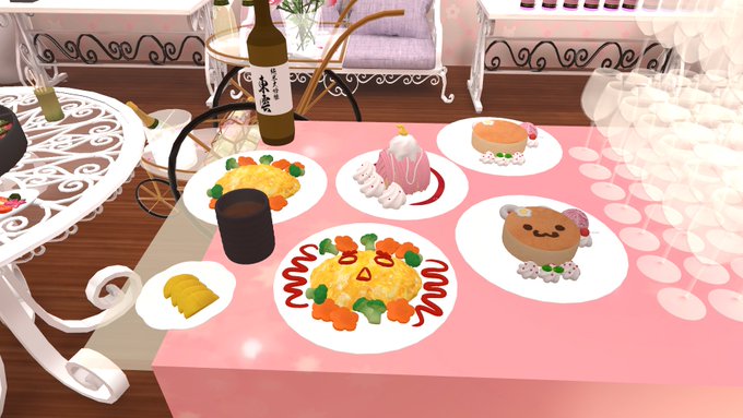 お料理の3Dモデルを担当しました!! テクスチャには薄荷さん(@310blank_mint )も協力してくれました! オムライス、パンケーキ、ほうじ茶セット、モンブランを作りましたよ!!美味しそう!! #秋葉原和堂 #東雲めぐ爆誕祭2022 #東雲めぐ
