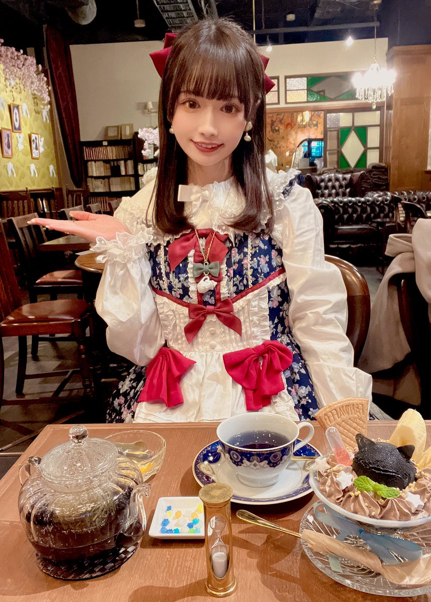 制服のレースは和堂さんのものの完全な再現ではなく、めーちゃんに合わせてオリジナルのレースをデザインしました。 めーちゃんの新しいロゴに使われている花・虹・雲・流れ星・キラキラをイメージしたレースです。 #秋葉原和堂 #東雲めぐ爆誕祭2022 #東雲めぐ
