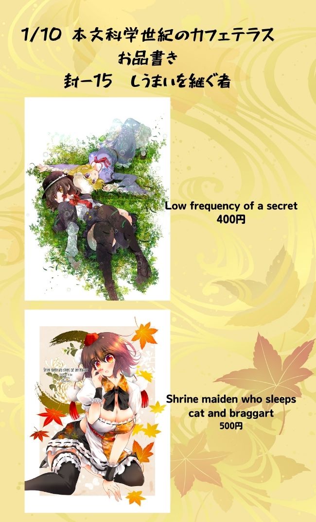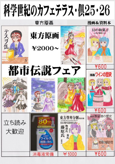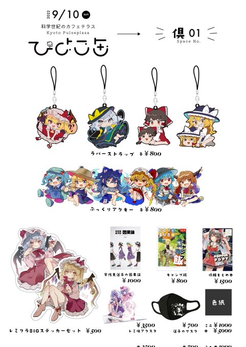 9/11 #科学世紀のカフェテラス 【封01】吉田屋。 おしながきです。新刊あります。新作グッズはミニメモ。 在庫ある本はすべて持っていきます。どうぞよしなに。 #酉京都2022 #酉京都2022告知 #京都秘封 #京都合同