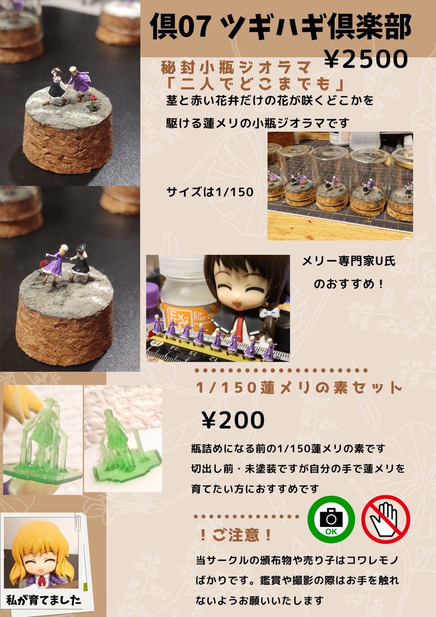 【新蓮子情報】 9月11日(日)科学世紀のカフェテラス【倶07】ツギハギ倶楽部 のお品書きです 瓶詰秘封は各4瓶づつ、秘封箱も4箱入荷予定です 新鮮な蓮メリをどうぞ! #科学世紀のカフェテラス #京都秘封 #京都合同