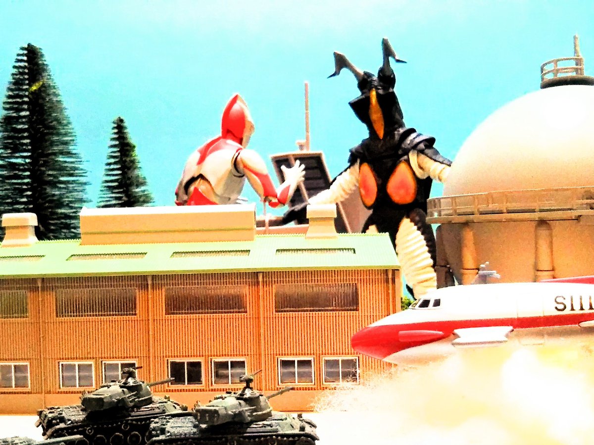 #夜のフィギュア撮影会 お題「再」(過去) ムラマツ 「しかし、何だな。こうして再び、イデ隊員と一緒にビートルに乗るのも、久しぶりだ。 そう言えば、しばらく会ってないが、ハヤタ、アラシ、フジは元気か?」 イデ 「はい、キャップ、3人は今日も元気であります!」 #ウルトラマン #科学特捜隊