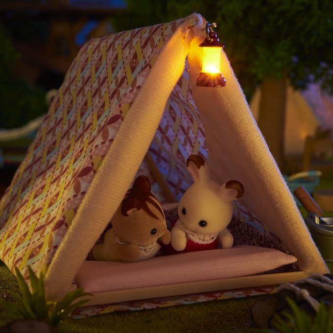 ショコラウサギのクレムとくるみリスのアンブローズは仲良くテントでおしゃべり中です⛺ 「ひみつきちみたい!」 「ほんとだね!じゃあひみつのおはなしする?」 「いいよ!」 どんなお話をするのかな😊? #シルバニアファミリー #シルバニア #シルバニア赤ちゃん #テント #秘密基地