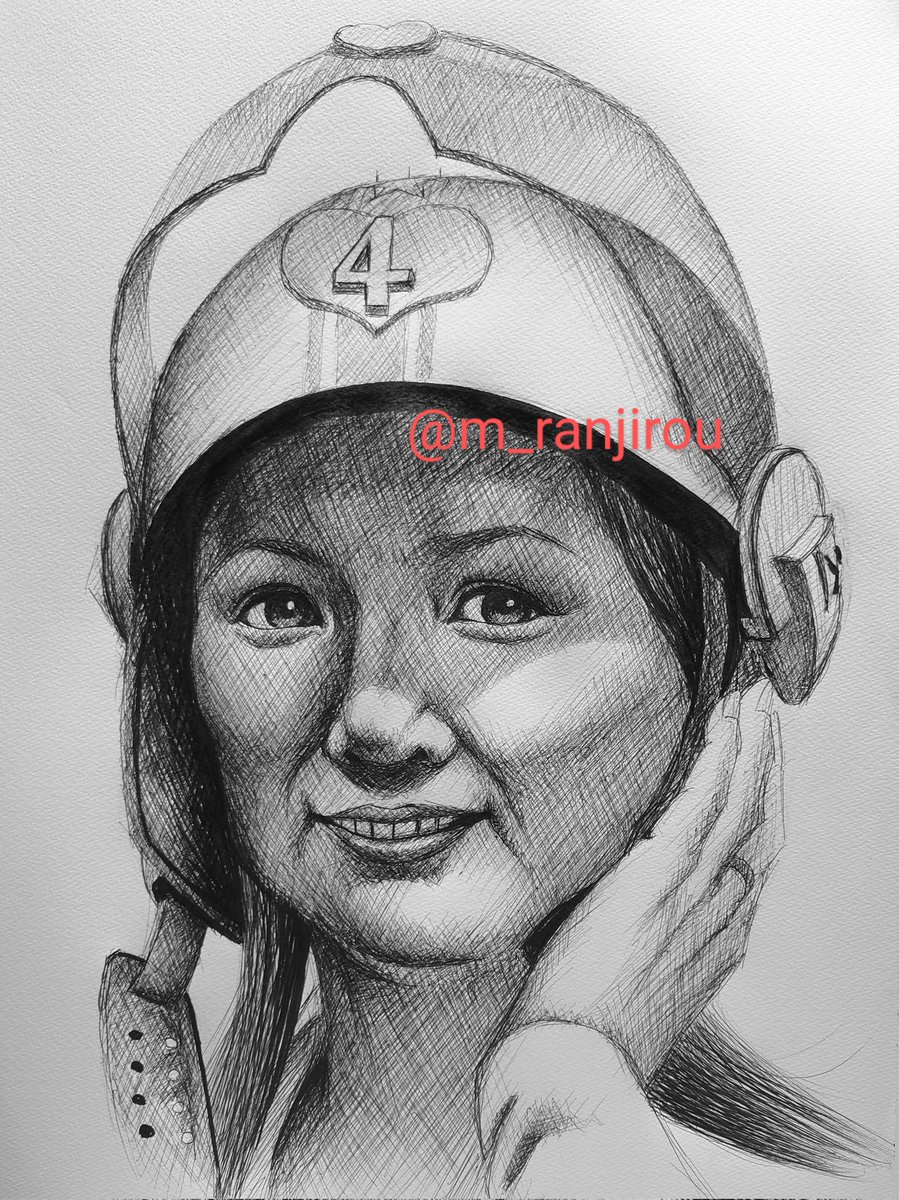 ペギー松山=モモレンジャー(#小牧リサ)を描きました。 テレビ『#秘密戦隊ゴレンジャー』より。 #スーパー戦隊シリーズ #特撮 #ボールペン画 #ペン画 #似顔絵 #アナログイラスト #イラスト #絵描きさんと繋がりたい