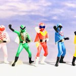 5人揃ってゴレンジャー‼️ 先日参戦した #感謝祭 での #ささきいさお さん& #堀江美都子 さんのパフォーマンスは 圧巻でした 最ᵃⁿᵈ高✧*。٩(ˊᗜˋ*)و✧* #スーパー戦隊シリーズ #秘密戦隊ゴレンジャー #エボリューショントイ #夜のフィギュア撮影会
