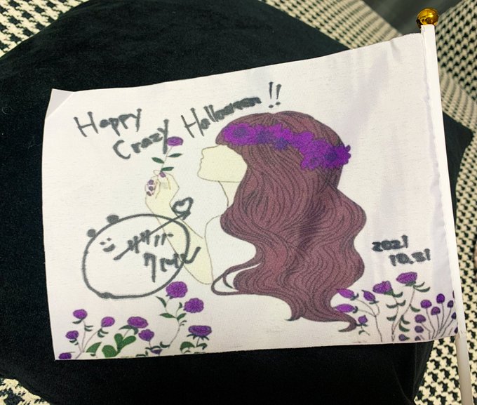 当日来場特典の旗です🏳 来てくれた人みんなにお渡しします💓 一つひとつサイン入れてるよ〜! 💜ご予約 グッズ付きのチケット 【特典版】Live&Cafe 7,500円 グッズなしのチケット 【通常版】Live&Cafe 2,500円 passmarket.yahoo.co.jp/event/show/det… #クルル様生誕祭2021 #VIOLETEDEN #秘密結社フローリス