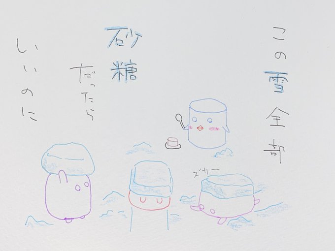 この雪全部 砂糖だったらいいのに → この世界が粉砂糖で覆われたとき 世の甘党たちは騒ぎ出す 自転車のサドルも 道端の雑草も あまーいスイーツに大変身 さあ、スプーンを片手に 出かけよう #雪 #積雪 #甘党 #ゆるいイラスト #イラスト好きな人と繋がりたい #ポエム #詩が好きな人と繋がりたい